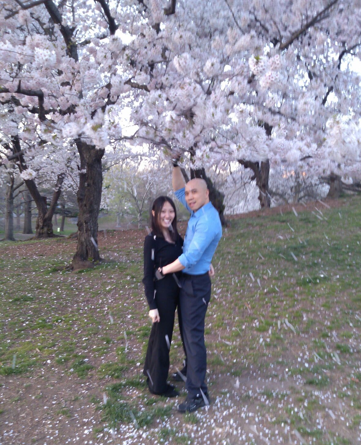 In the end, I recall a brief ecstatic moment, when we posed for a picture and he shook the tree ever so delicately. It rained dainty pink petals of romance.