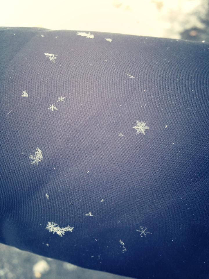 Winter Wonderland. In the vast forest of Wyndam, it was discovered that snowflake designs are real as can be, each intricately woven, purposefully outlined, yet naturally fluffy… Seeing them effortlessly dropping serendipitous designs onto my black down coat, it seemed as if my sleeve was a vast milky way of evanescent patterned stars…Wiping them away was like sweeping away blankets of dry fluff…It felt like a winter wonderland, and Mother Nature was raining down Christmas ornaments.